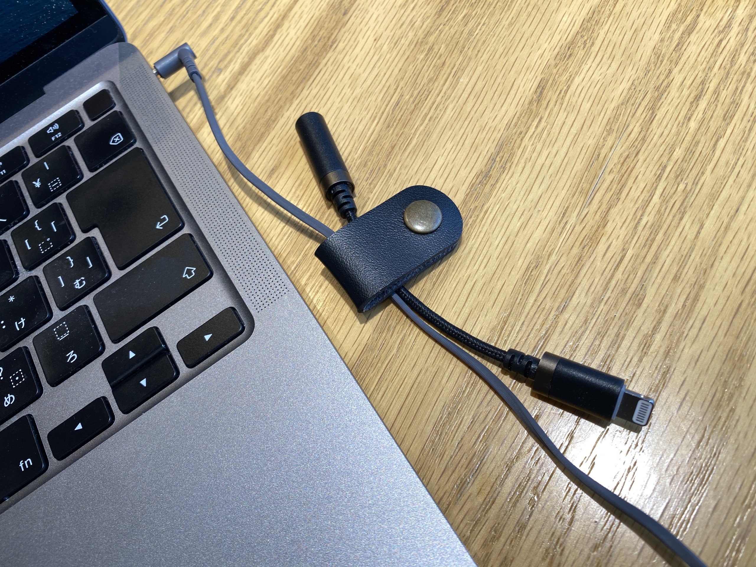 これによりMacbookAirでイヤホン使用する時は変換ケーブルをなくさずにくっつけたまま使用できます。