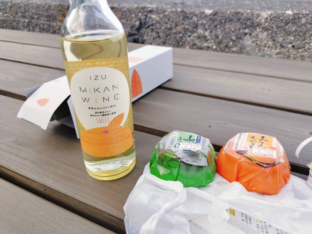 シンプルなお風呂なので休憩スペースとかはありませんが、この海岸通りにはイスが多くあるので、そこで現地のみかんワインをいただきました。とても甘くて飲みやすくおいしかったです。