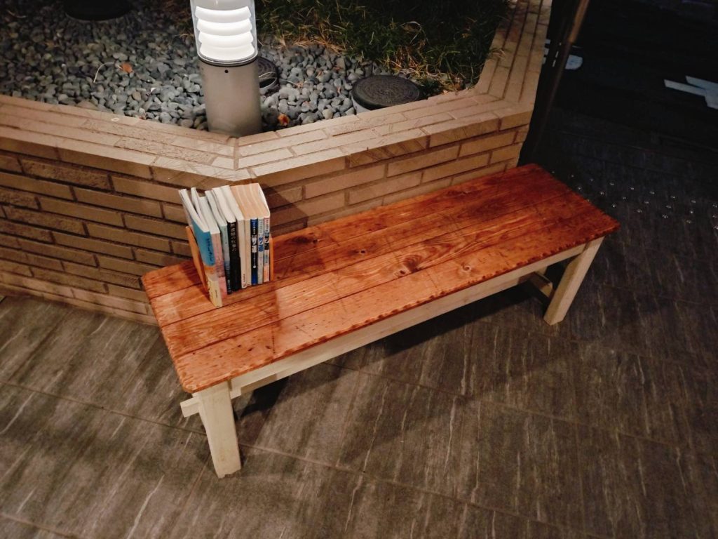 外には木製ベンチにサウナ本が置かれています。サウナ上がりにここで休憩しながら本読んだり、早く着いてしまった時にはここで時間つぶせそうです。