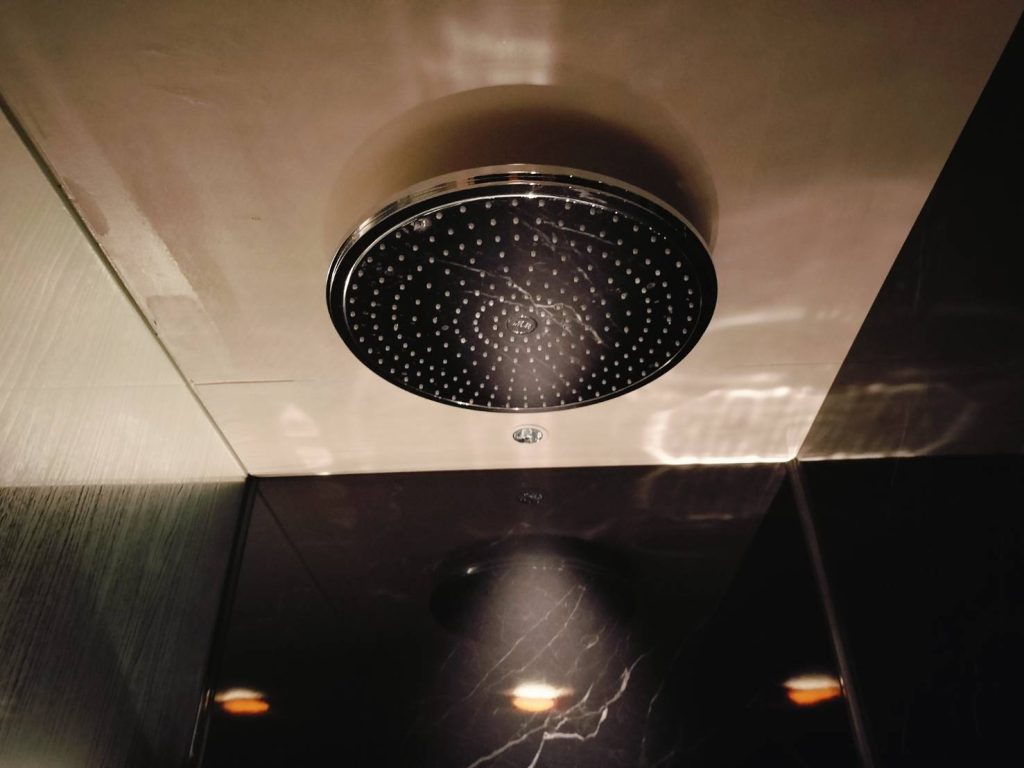ドバーッて降り掛かってくるのかと思ったらめちゃくちゃやさしい水量から始まります。調整可能です。
